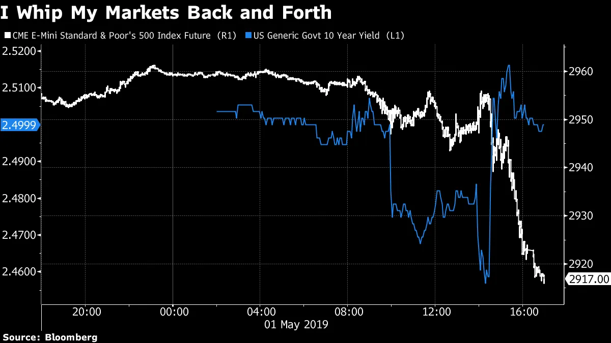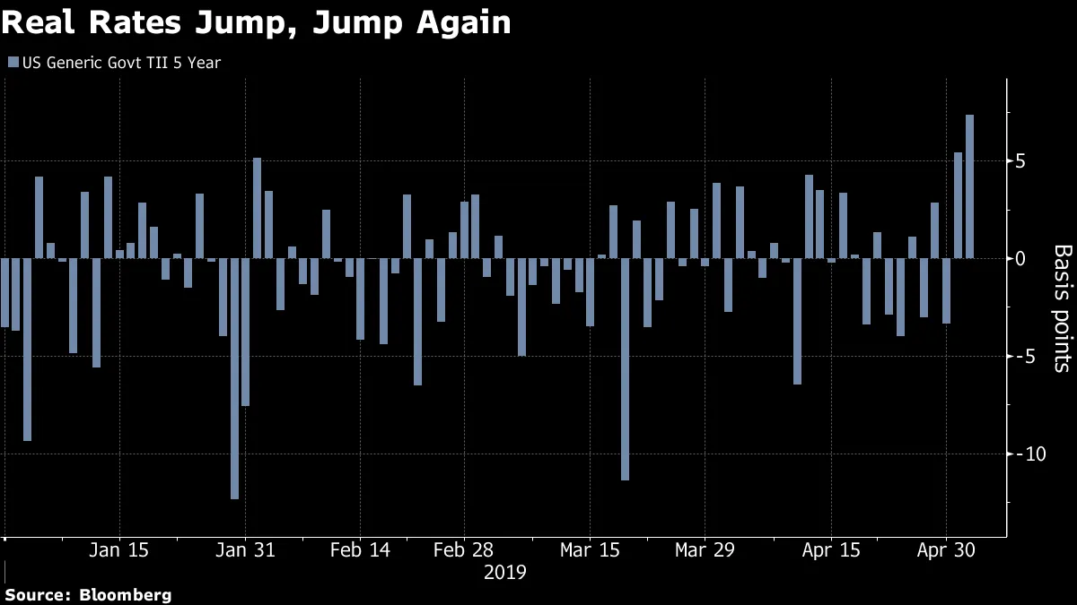 股票和债券在周四随着美中贸易谈判恶化的消息一起抛售,这表明市场定位——对久期和股票的热情——达到了一个可以轻易被击倒的程度。通常情况下,债券在负面贸易头条出现时会受到追捧,这会对股票造成伤害。