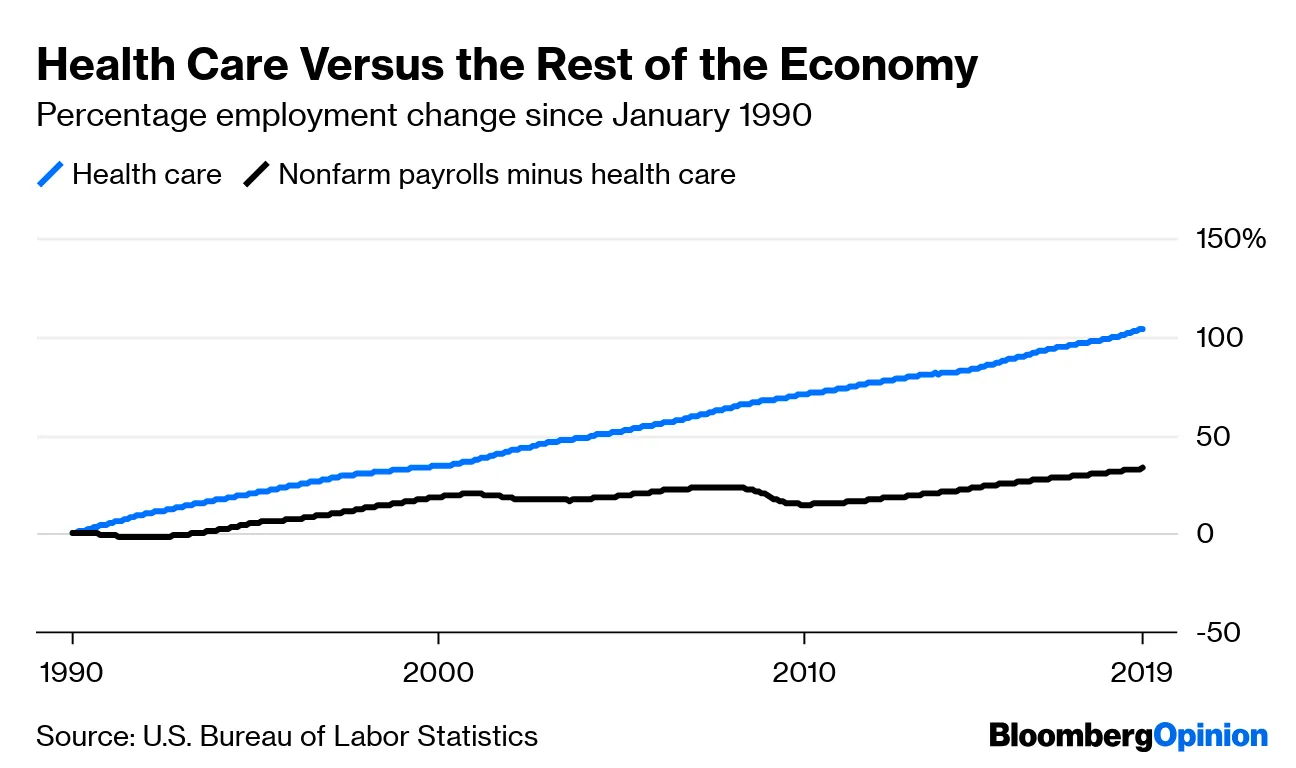但是,医疗保健繁荣并不一定是更广泛经济的好兆头,贾斯廷指出。这是一个“低生产力行业,”他写道,当它开始超过更广泛的就业市场时,这可能是衰退的迹象。