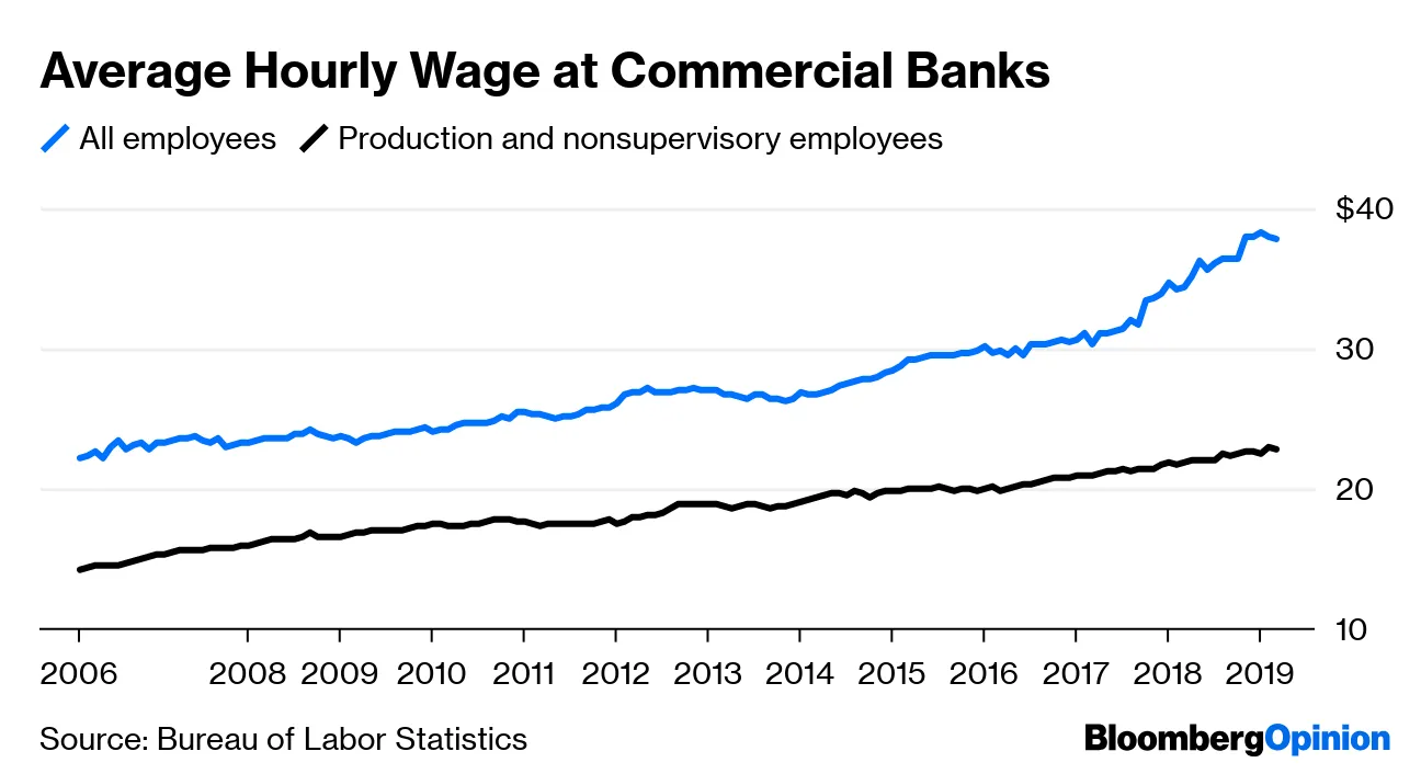 然而,在唐纳德·特朗普政府期间,工资增长对高层银行家来说是异常出色的,马克·怀特豪斯指出——正如特朗普的蓝领选民所承诺的那样: