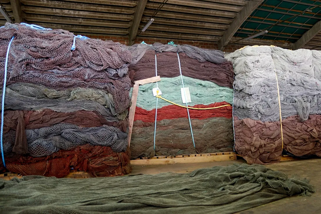 等待加工成Econyl纱线的渔网。