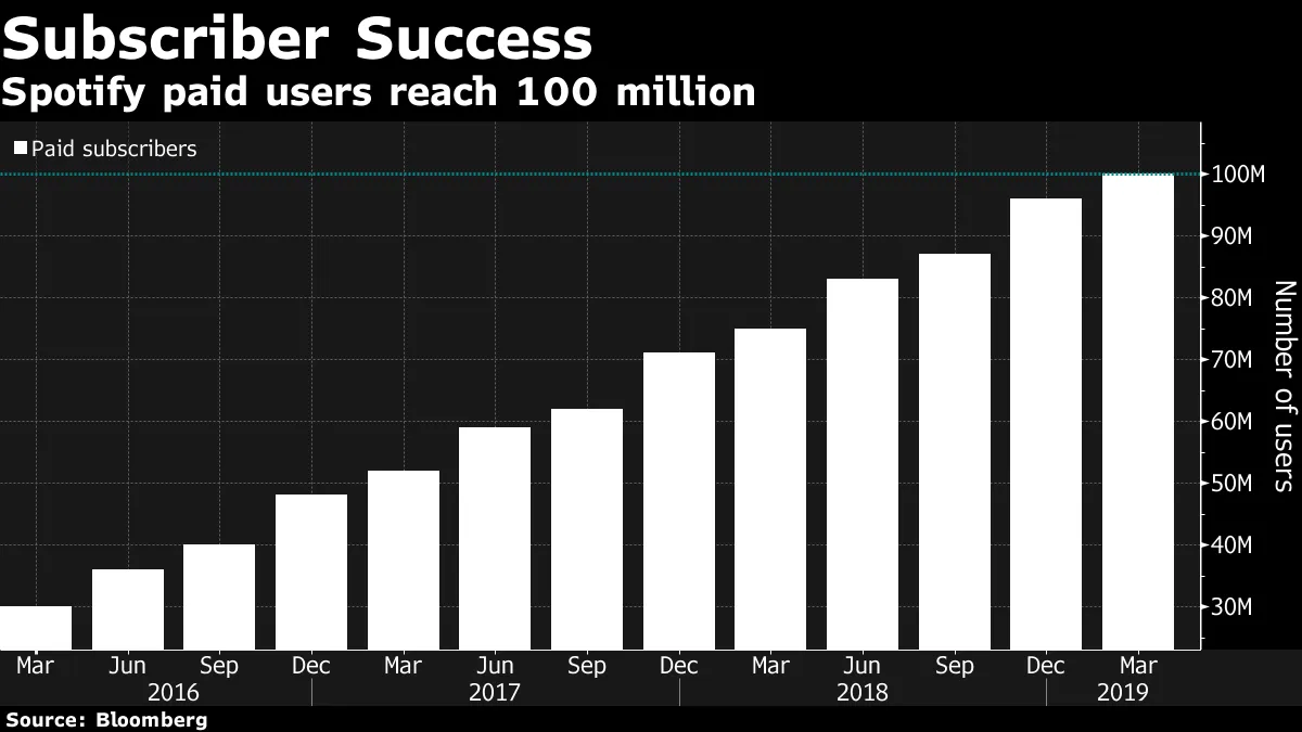 这种快速增长推动了整个音乐行业,但仍未使Spotify盈利。该公司在2019年第一季度亏损5200万美元,并表示预计今年将亏损高达3.8亿美元。