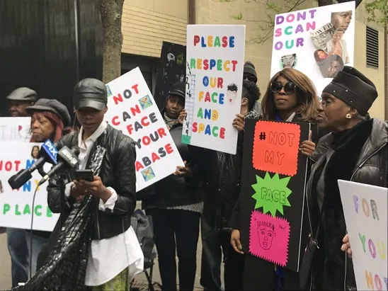 大西洋广场大厦的居民抗议门口的面部识别技术。布鲁克林法律服务尼尔森管理 告诉 Gothamist 该技术旨在增强安全性,并且“已与一家领先的安全技术提供商合作进行拟议的升级,该提供商已向业主保证,收集的数据绝不会暴露给第三方,并且是完全加密的。”
