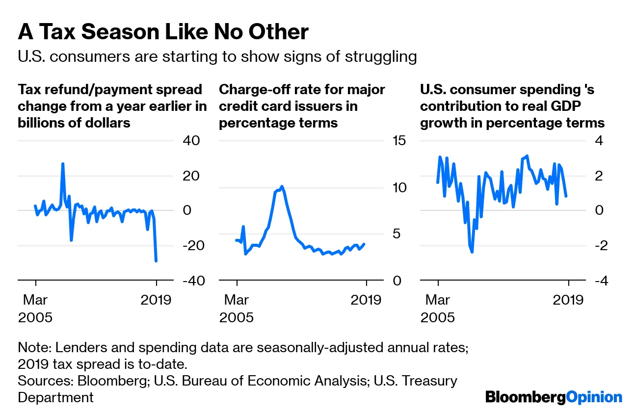 美国消费者看起来并不强大。经济似乎在蓬勃发展,工作岗位增长超出预期,但 家庭部门出现了问题,丹妮尔·迪马丁诺-布斯为彭博社观点撰写。美国人正在动用储蓄。由于他们支付的税款增加而退税减少,要么他们将继续落后,要么消费将受到影响。美联储可能需要在宣布经济“稳固”之前,关注头条新闻之外的情况。