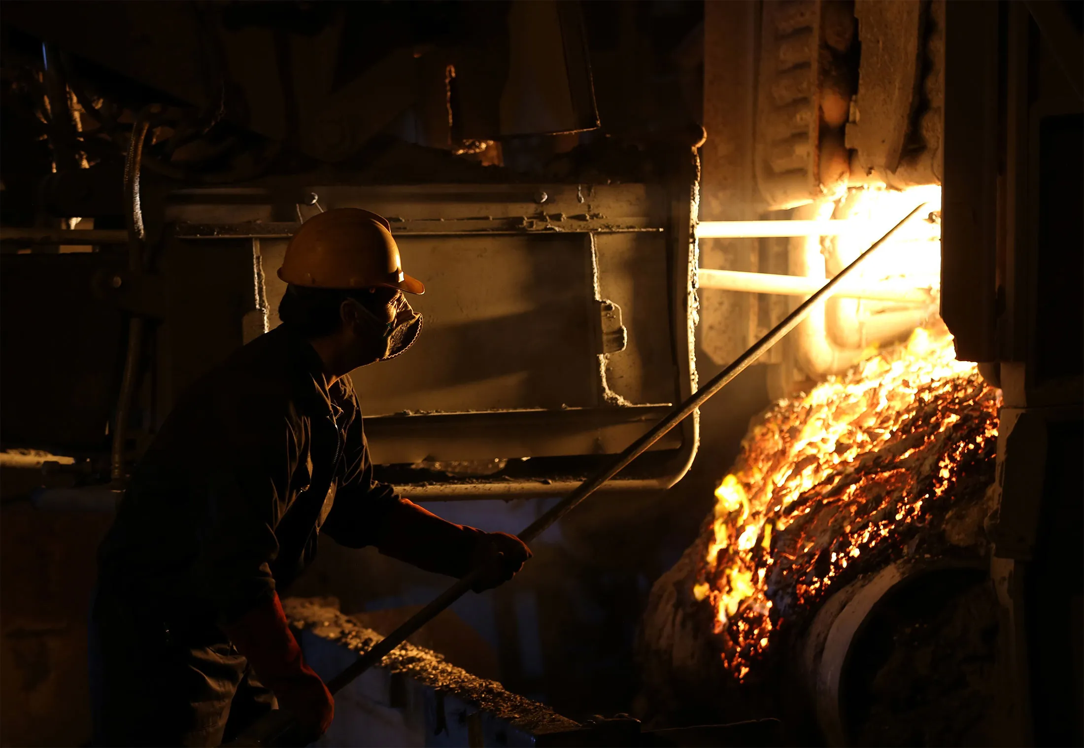 一名员工在2015年4月6日伊朗中部城市亚兹德的伊朗合金钢公司(IASCO)工厂工作。法新社照片 / ATTA KENARE(照片版权应注明ATTA KENARE/法新社/Getty Images)摄影师:ATTA KENARE/法新社一名伊朗钢铁工人。摄影师:Atta Kenare/法新社/Getty Images