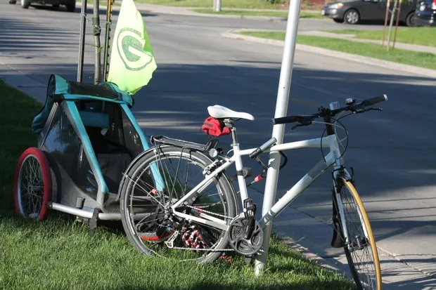 内森·康罗观察到,一旦他们在后面加上了绿湾包装工的旗帜,汽车对他家自行车和拖车变得更加友好。“也许其他骑自行车的家庭可以通过悬挂当地运动队的旗帜与司机建立关系,”他建议。内森·康罗八年前,我和我的妻子为了研究生学业搬到了威斯康星州密尔沃基,身边没有车,但妻子怀孕九个月。在我儿子生命的头八年里,我和我的妻子保持无车生活,依靠自行车、公交车、Zipcar、Lyft和杂货配送服务。