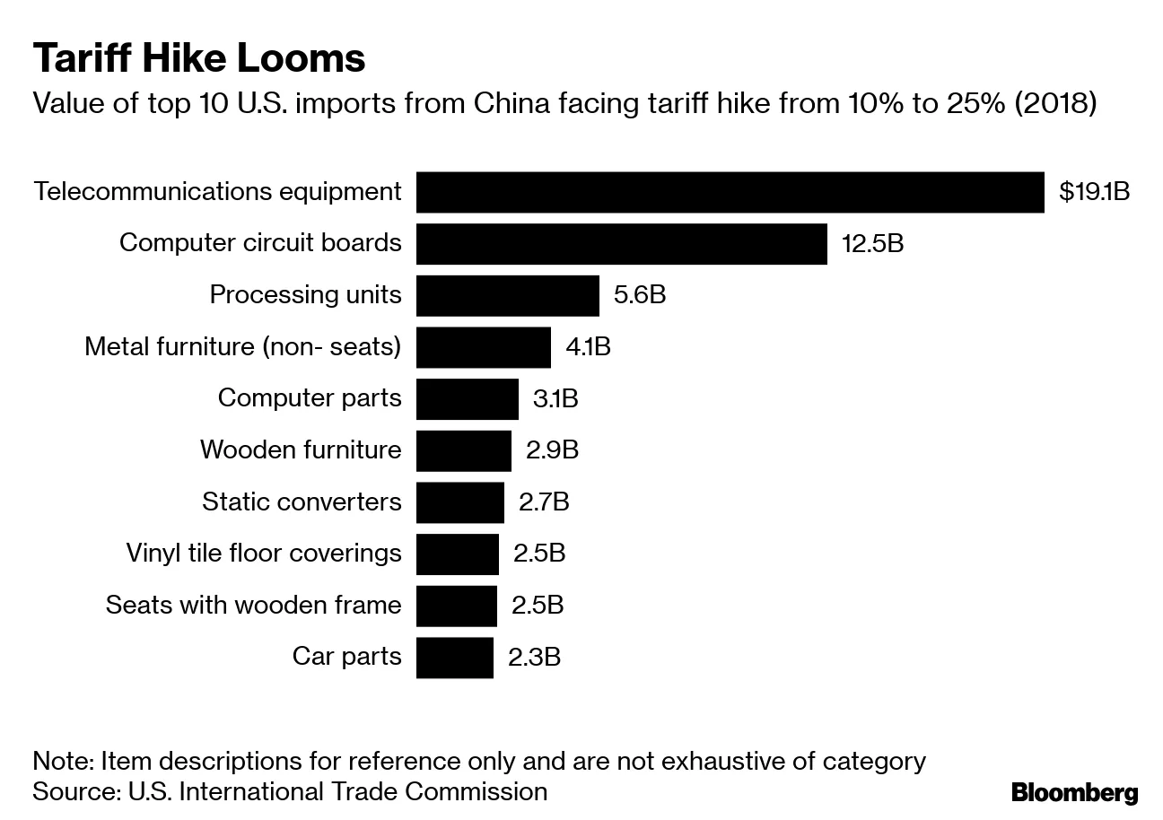 - **特朗普今天表示“没有必要急于”**与中国达成协议,此前他已对2000亿美元的中国商品提高了关税。北京准备进行报复,尽管尚不清楚具体如何。