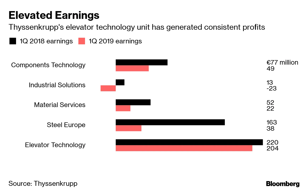 蒂森克虏伯进行了180度大转弯,放弃了将自己分拆为两部分的计划,宣布将把其电梯业务上市。此举是在公司决定监管机构不太可能批准其与塔塔钢铁的欧洲合资企业后做出的,这使得印度钢铁制造商在英国和荷兰的工厂的未来变得不确定。蒂森克虏伯正在考虑裁员6000人。其股价创下历史最大涨幅,而塔塔的股价则下跌。