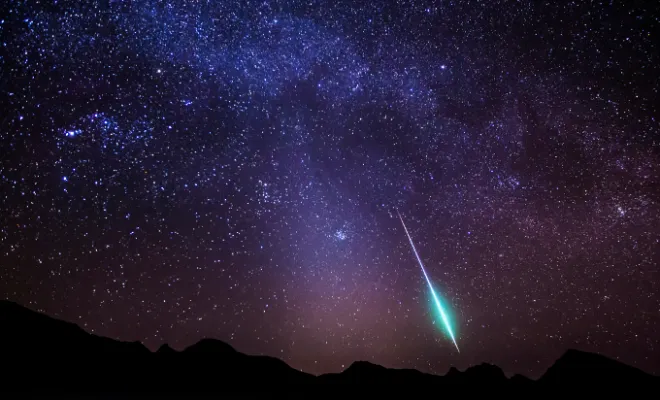 7. 哈雷彗星的碎片 点亮了夜空**。**来自这颗著名难觅的彗星的陨落碎片引发了一场绚丽多彩的流星雨,银河作为背景。