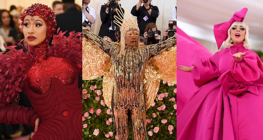 5. 名人们在 大比拼各自的造型 于大都会博物馆慈善舞会。 Lady Gaga的四合一服装、Billy Porter的珠宝猫装、Cardi B的三万根羽毛裙:时尚界的盛夜充满了夸张的惊喜。