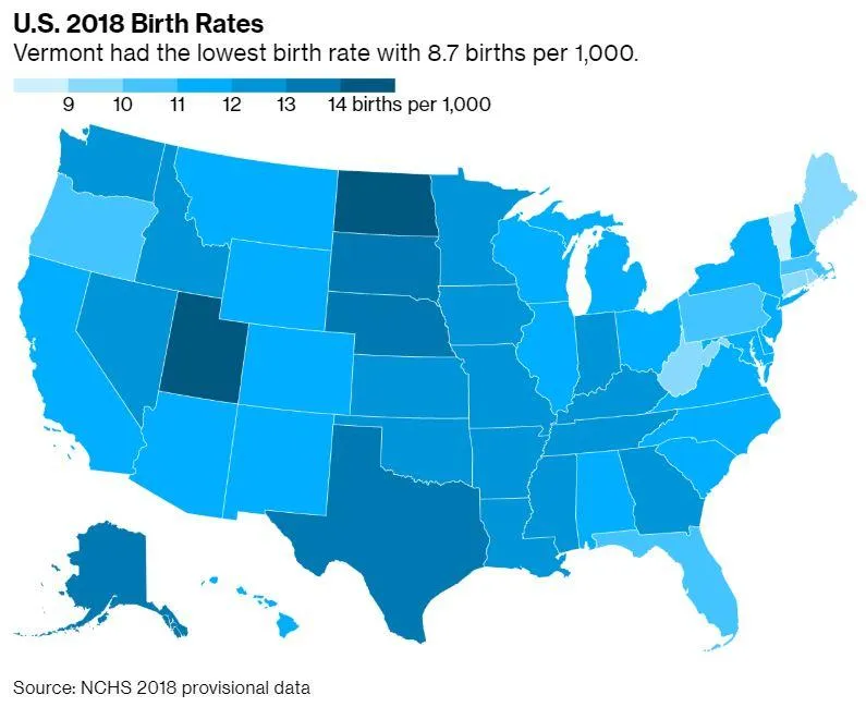 美国人正在生育更少的婴儿。根据新的CDC报告,去年美国出生人数降至约379万,创下近三十年来的最低水平,比2017年下降了2%。该国的生育率在2018年也创下历史新低,每千人仅有1,728个出生,比2017年下降了2%。