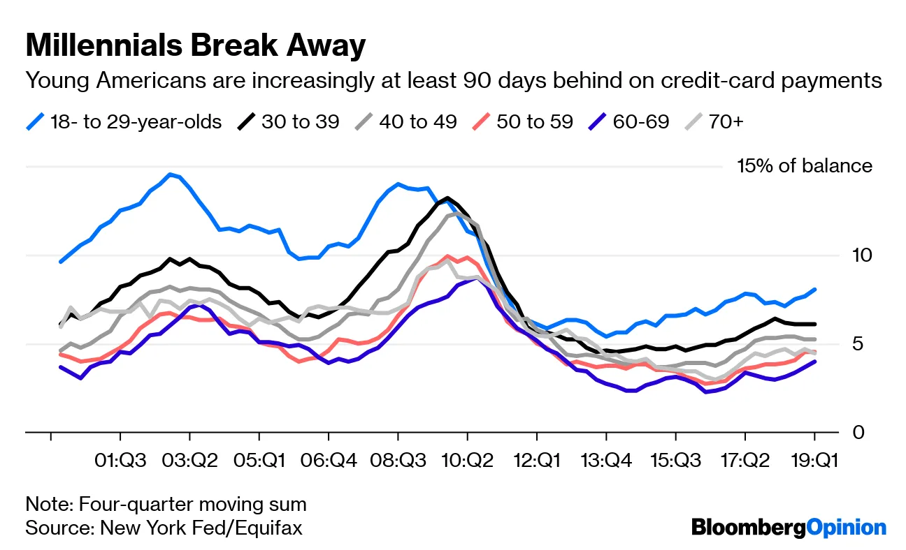 在美国零售销售 发布 三个月内的第二次下降之际, 布赖恩·查帕塔 提出了另一个值得担忧的原因:年轻人在 信用卡 付款上落后。