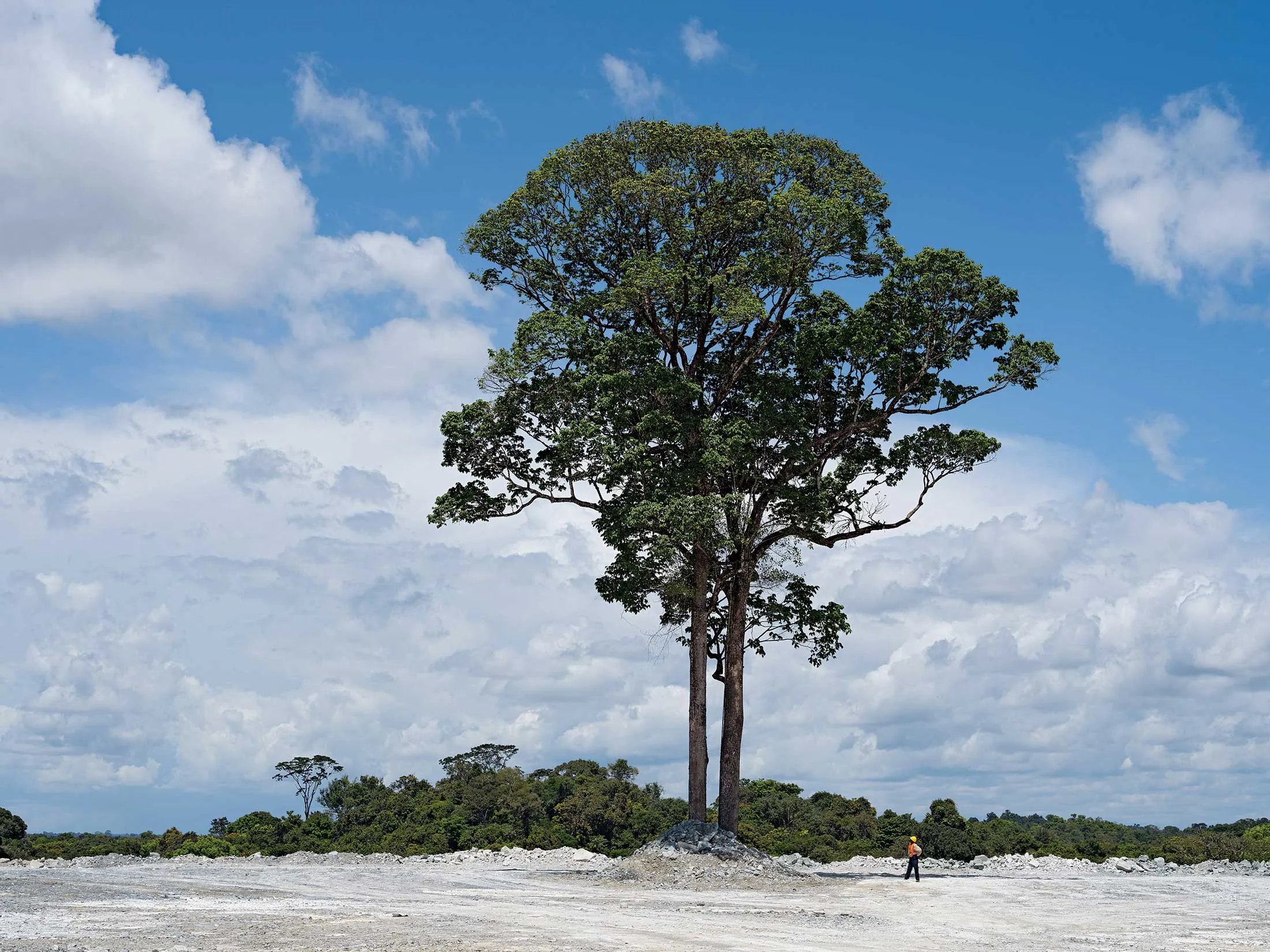 在为该地点进行清理的区域中,孤零零地留下了一棵热带硬木树。摄影师:Lucas Foglia 为《彭博商业周刊》拍摄