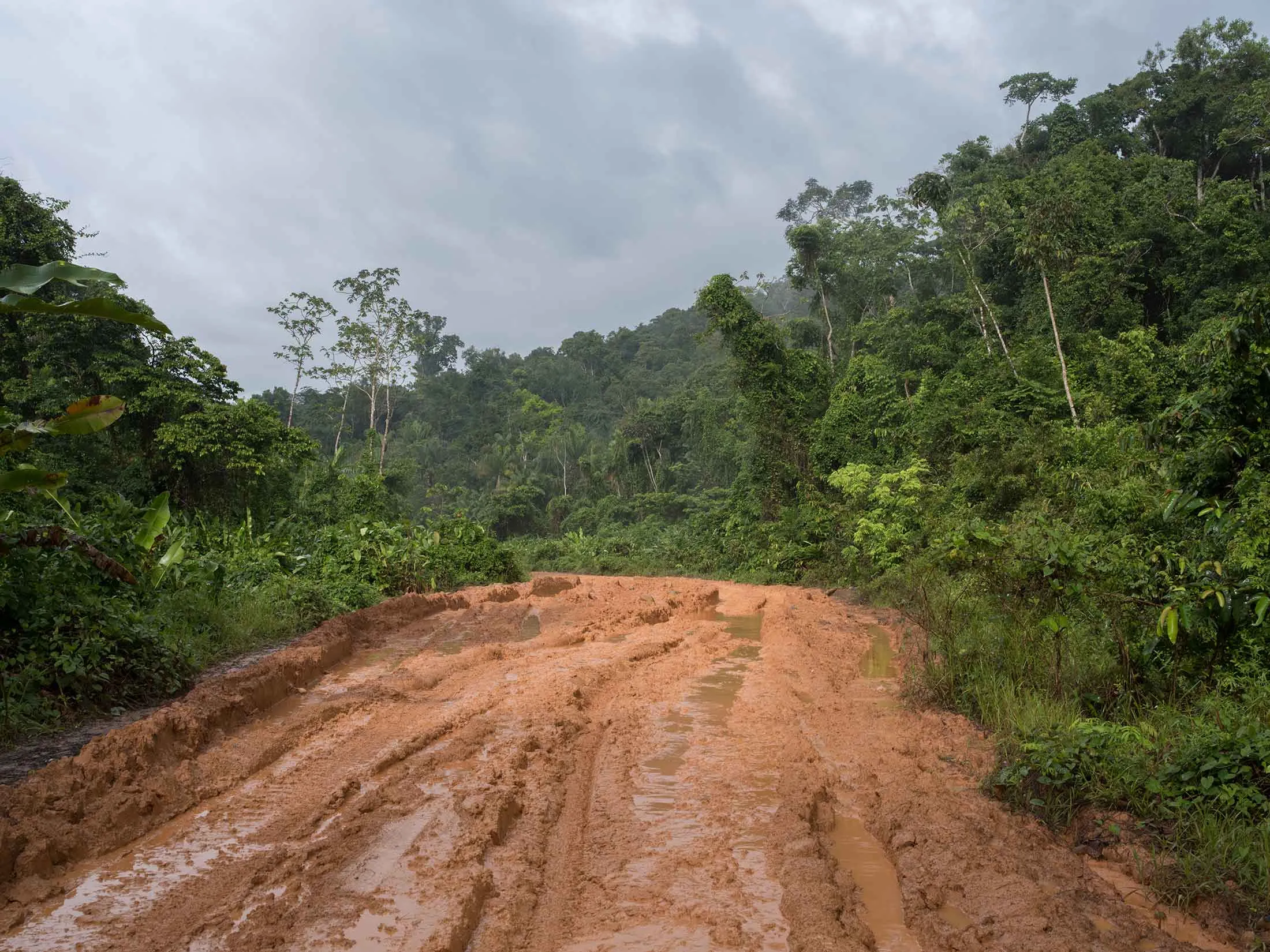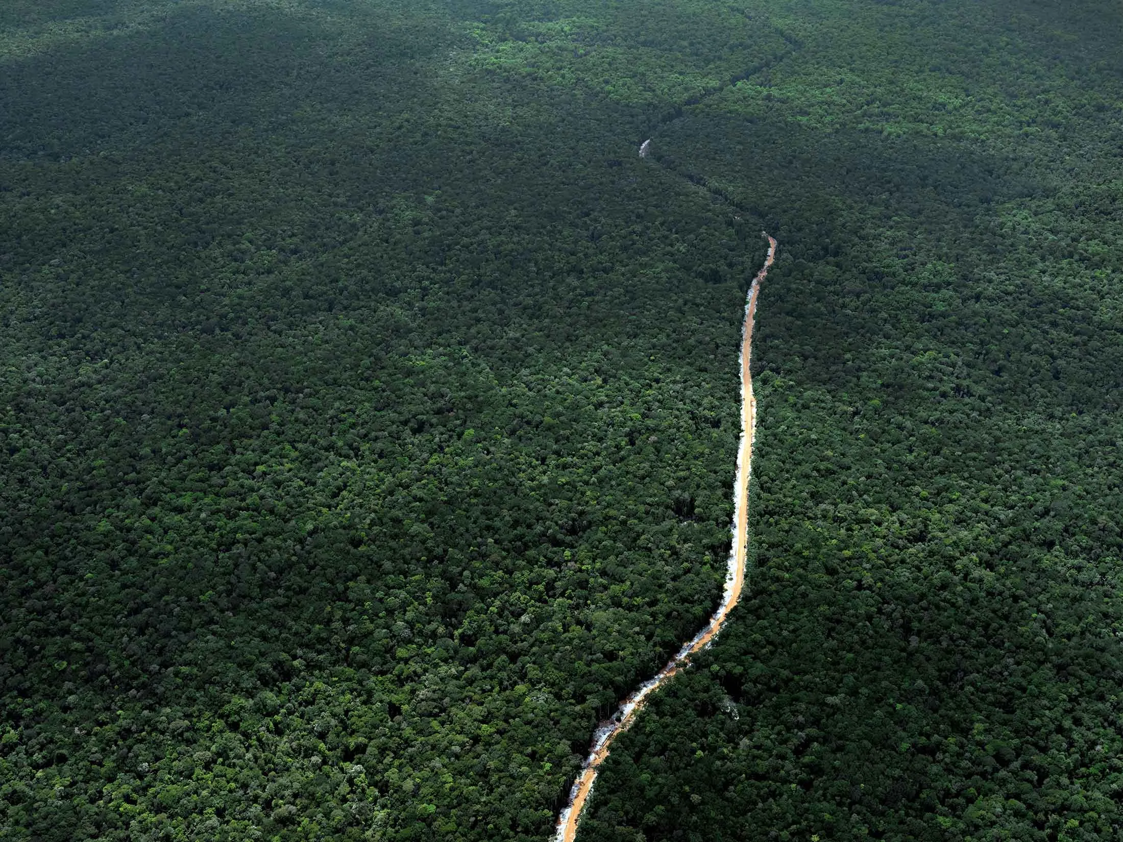 穿越圭亚那雨林的唯一道路大部分是未铺砌的,并且在雨季时常常无法通行。摄影师:Lucas Foglia 为彭博商业周刊挪威在2009年与圭亚那签署了一项协议,承诺提供多达2.5亿美元以遏制森林砍伐,并因此应对气候变化。树木是世界上最古老和最好的碳捕获技术之一;它们从空气中吸收二氧化碳,将碳储存在木材中,并释放氧气。这笔资金用于支付,包括来自Winrock International的科学家,协助圭亚那森林委员会开发一个测量国家森林储存碳量的系统。在对其树木进行清查后,委员会现在可以做出明智的决定,确定哪些树木可以砍伐而不危及整个生态系统的健康。圭亚那的年森林砍伐率已降至0.048%,是南美洲最低的数字之一,远低于热带国家的0.275%平均水平。