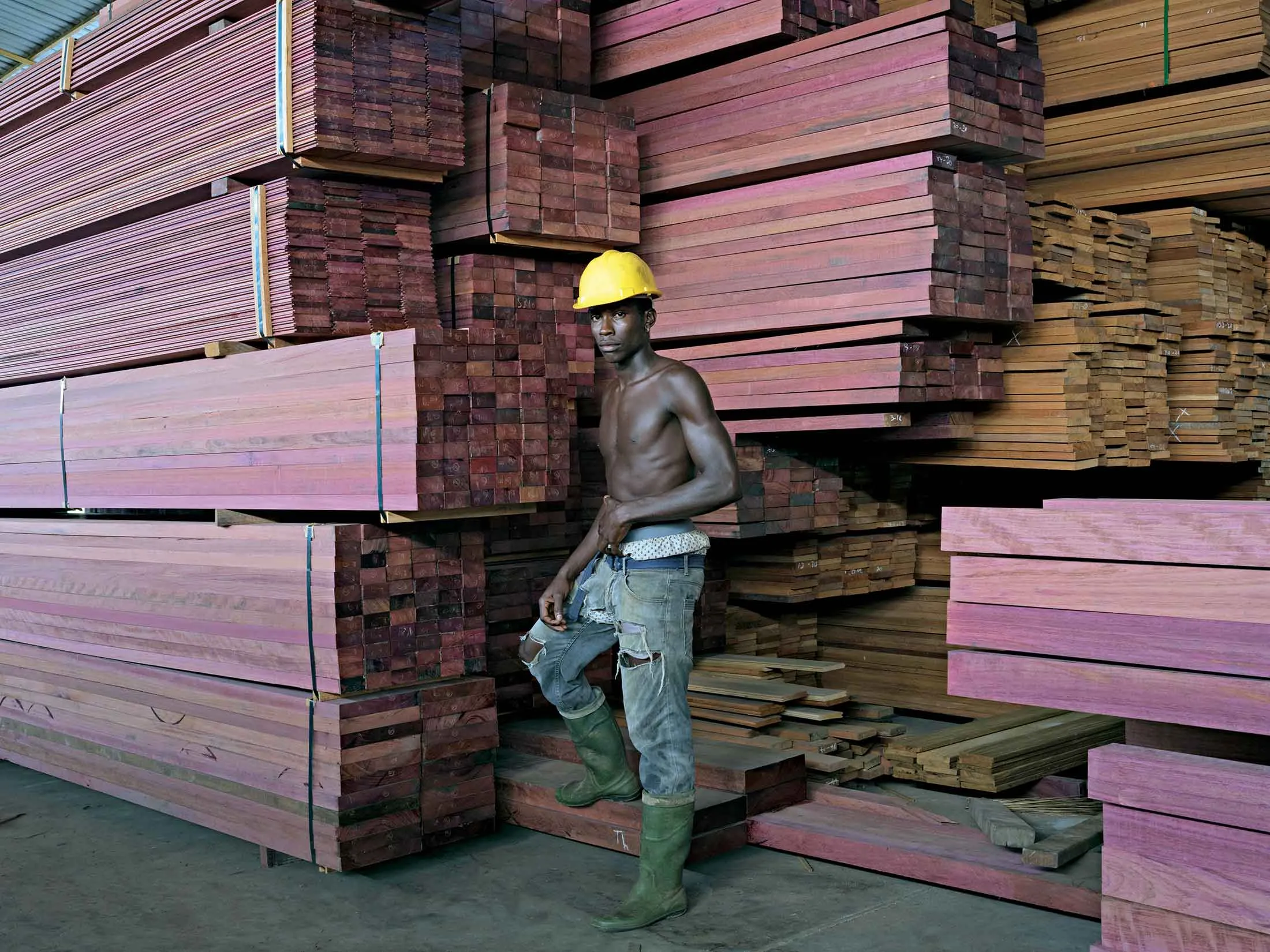 瑞尔森·哈泽尔为超级木材公司工作,这是一家圭亚那拥有的木材生产和出口商。照片中的木材来自紫心木树,其暗棕色木材在切割后会变成深茄紫色,随后会随着时间的推移而褪色。热带硬木在亚洲需求量很大,当地供应已经被破坏。摄影师:卢卡斯·福格利亚,彭博商业周刊