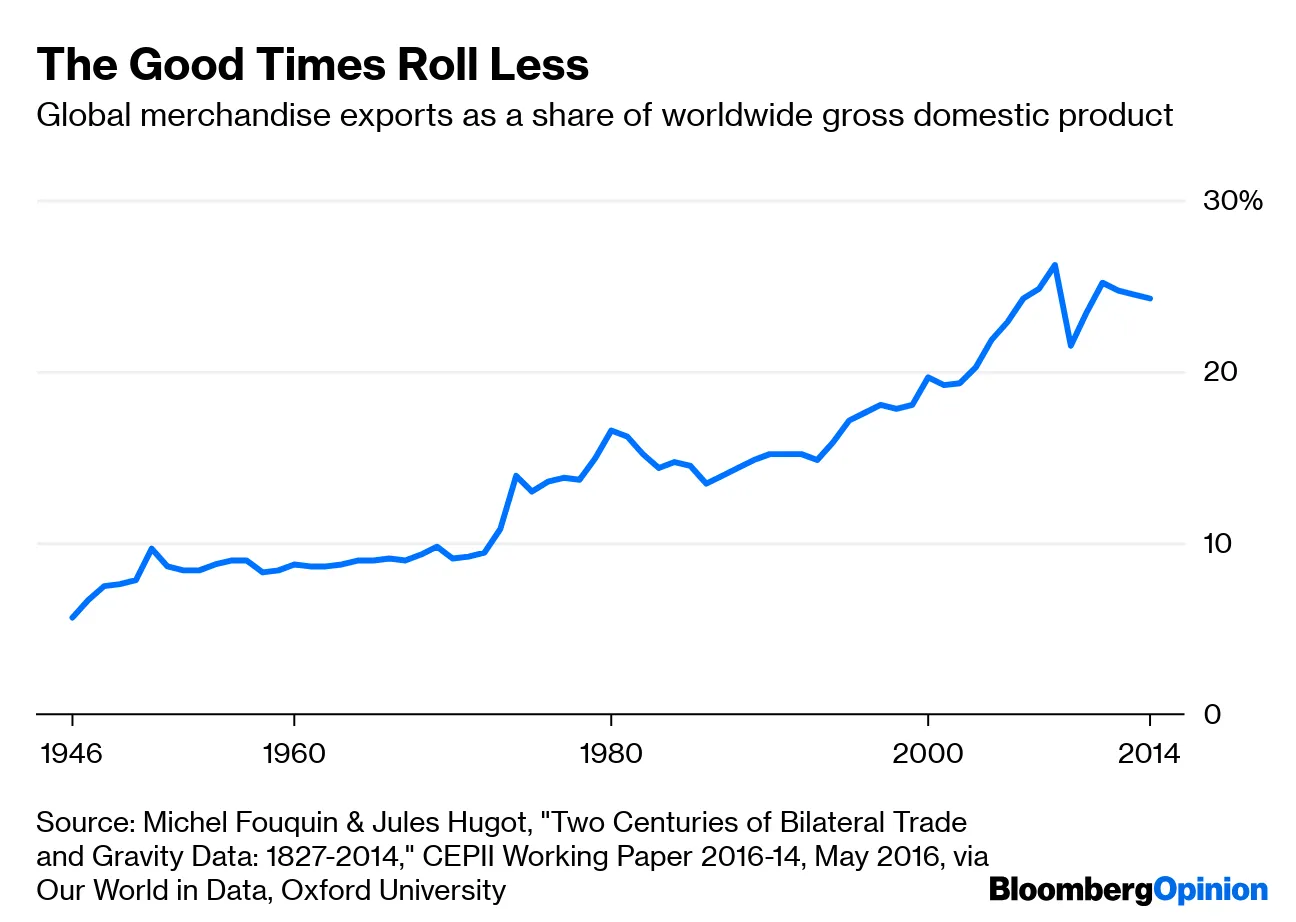 自金融危机以来,全球化的退却可能正是导致我们看到的 生产率增长缓慢的原因,诺亚·史密斯写道。如果我们要坚持特朗普式的贸易战争道路,诺亚写道,停滞的经济是交易的一部分。