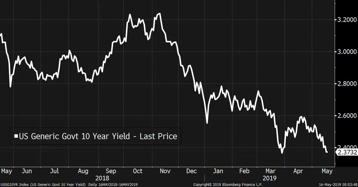 贸易战加剧、中东冲突的持续担忧以及对经济增长的担忧都使投资者 纷纷涌向相对安全的债券。今晨国债收益率再次下降,达到自2017年以来的最低收盘水平。高盛资产管理国际发出警告,称收益率有望反弹,因为美国经济 实在太健康,使得国债无法维持在这个水平。此外值得注意的是:中国对全球基准的持有量 自11月以来首次开始下降。