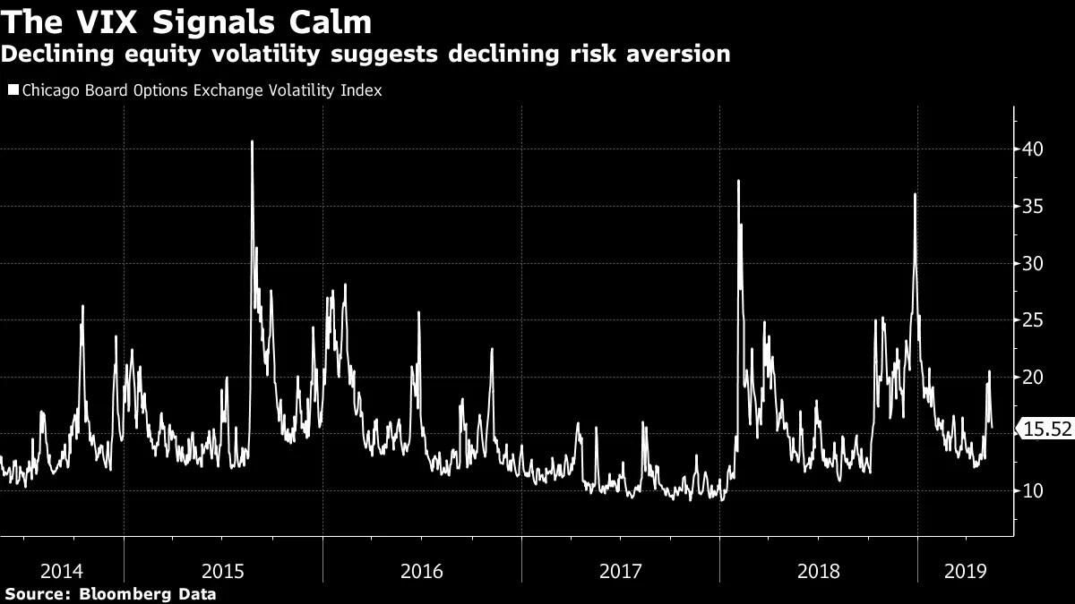 但另一个流行的风险偏好指标,芝加哥期权交易所波动率指数(VIX),在过去两周的戏剧中相对平静: