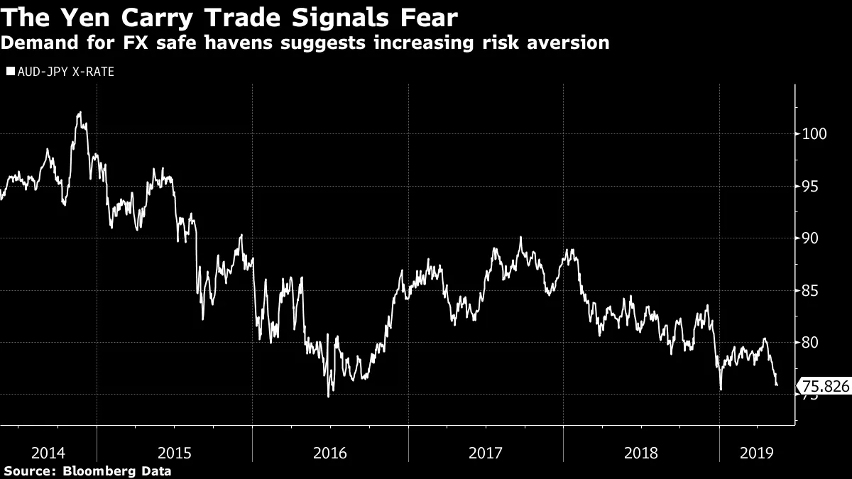 然而,外汇市场却显示出担忧。澳大利亚元与日本日元之间的汇率,即人们借入日元并将收益存放在澳大利亚资产中以利用那里的高利率的“日元套利交易”,一直是风险情绪的一个指标。当人们感到紧张时,他们会购买日元,而当他们有信心时,他们会购买澳元。从这个指标来看,货币市场看起来非常紧张,尽管在2016年6月英国脱欧公投后的几天里仍然没有那么惊慌。
