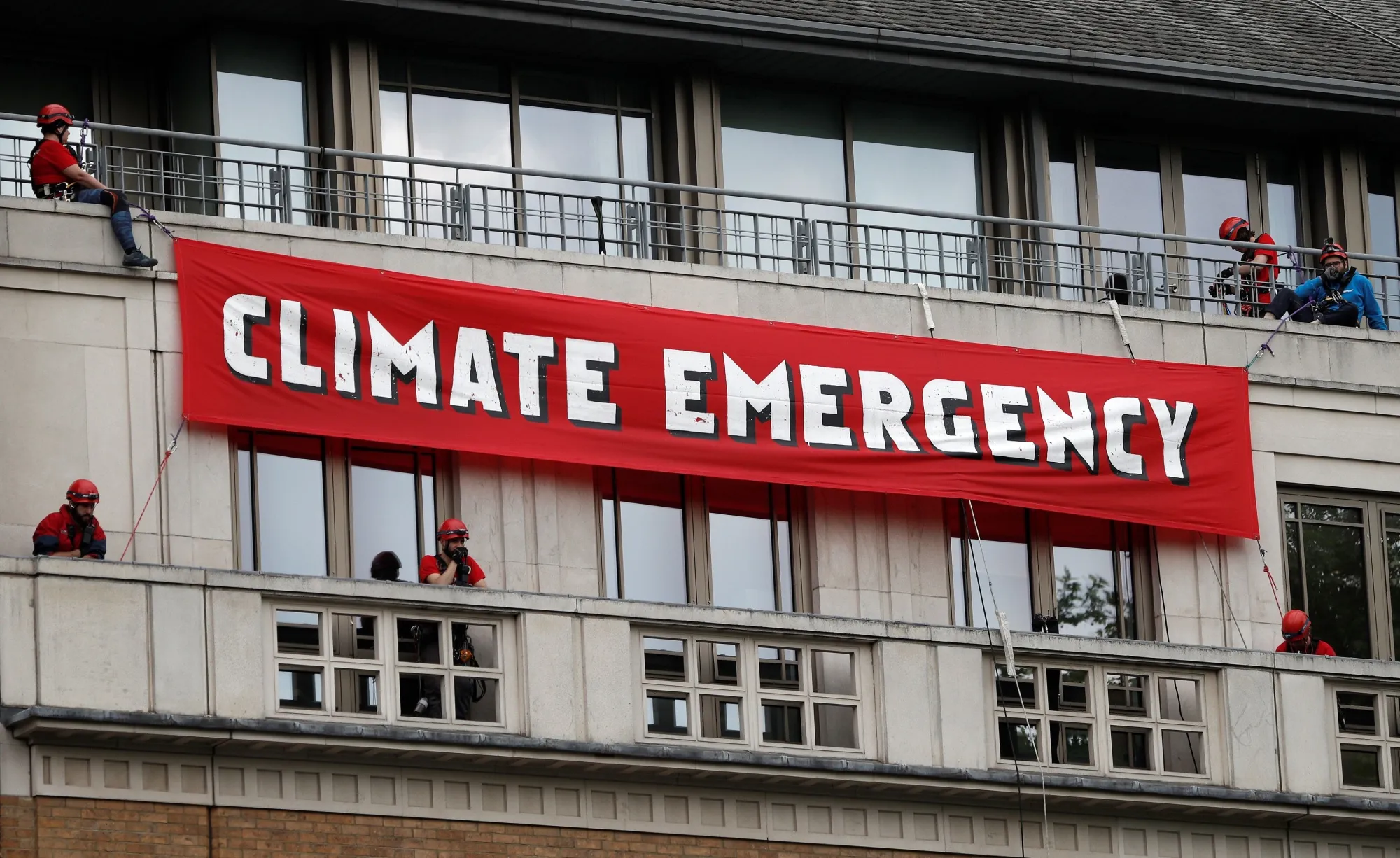 环保行动组织绿色和平的活动人士于2019年5月20日在伦敦市中心的英国石油(BP)总部外示威。- 绿色和平的活动人士在周一封锁了BP位于伦敦的全球总部入口,试图说服这家英国能源巨头停止石油和天然气勘探。环保组织将活动人士封闭在五个重型集装箱中,这些集装箱在夜间被移动到位。(照片由Adrian DENNIS / AFP提供)(照片版权应为ADRIAN DENNIS/AFP/Getty Images)摄影师:ADRIAN DENNIS/AFP绿色和平在伦敦的BP总部外示威。摄影师:Adrian Dennis/AFP/Getty Images