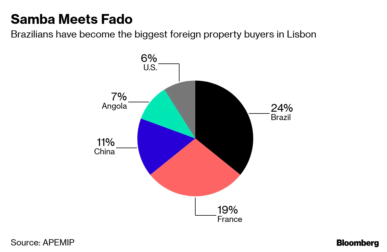 葡萄牙是新的迈阿密。 至少对于被该国的平坦所得税率和免税养老金吸引的富裕巴西人来说。巴西人在2017年是葡萄牙第二大外国购房者,仅次于法国人,并且已经成为里斯本和波尔图最大的购房者,葡萄牙房地产专业人士与经纪人协会表示。
