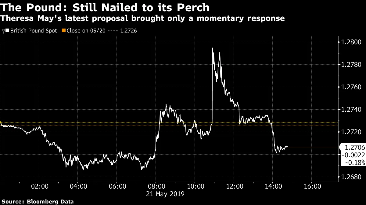 我本以为外汇交易者对梅的情绪如此低迷,以至于即使她给英镑施加4000伏特,它也不会上涨。但看来我错了。正如这张图表所示,希望永存。梅的新提议的消息让英镑在一个多小时内飙升。然后,政治反应开始出现,英镑又回落。