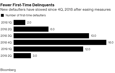 贸易战可能是个好消息,因为中国的困境债务人被迫维持更宽松的信贷条件。尽管国家13万亿美元的债券市场今年违约激增,但首次违约的公司数量正在下降。本季度首次违约的公司数量已降至三家,低于过去两个季度。