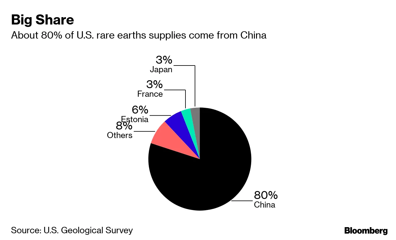 彭博社放松。这篇《人民日报》文章并没有承载社论的分量,社论反映了共产党高层的观点。无论如何,正如我的彭博社观点同事大卫·菲克林所说,“稀土是纸老虎。”上一次中国停止稀土出口是在2010年与日本发生争执时,这一举动令人瞩目地适得其反,促使其他地方的生产增加。中国在全球供应中的份额从97%骤降至71%。