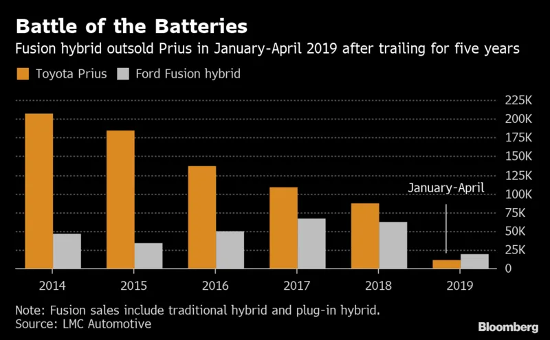 普锐斯正在失去光彩。 尽管混合动力车比以往更受欢迎,丰田之前的生态移动先锋已落后于福特Fusion混合动力车。