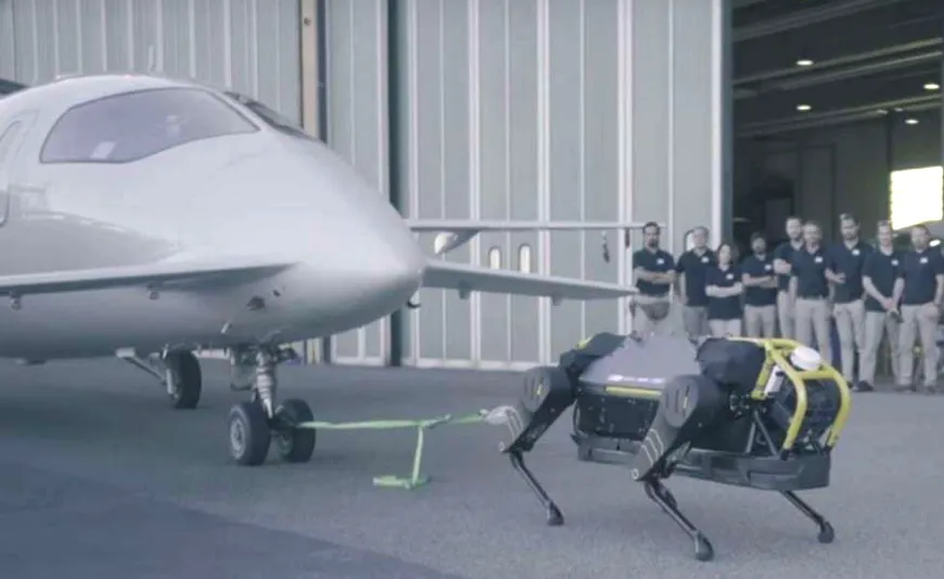 超强机器人狗。一款旨在帮助灾后恢复的液压机器人在首次亮相时拉动了一架3吨重的飞机。