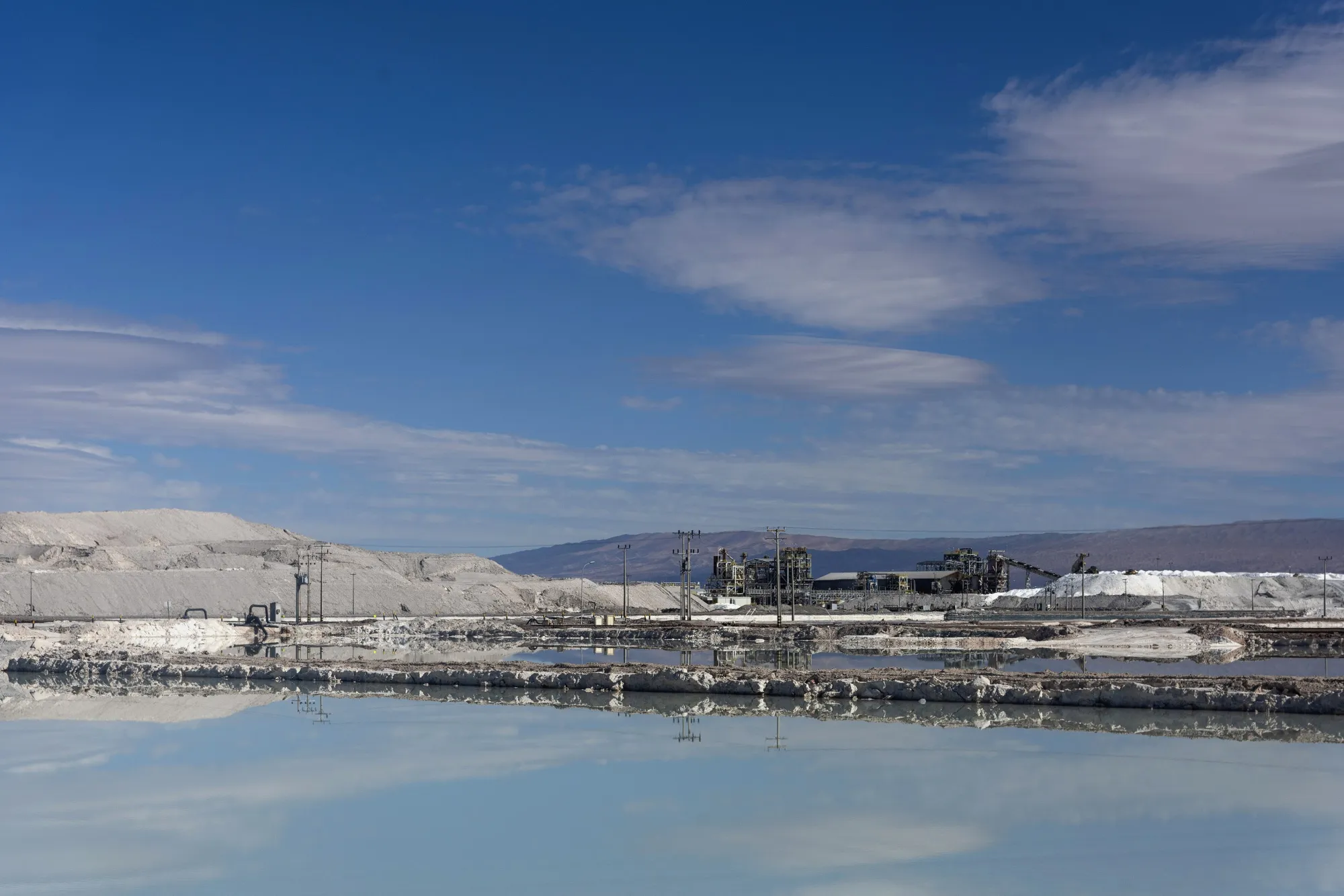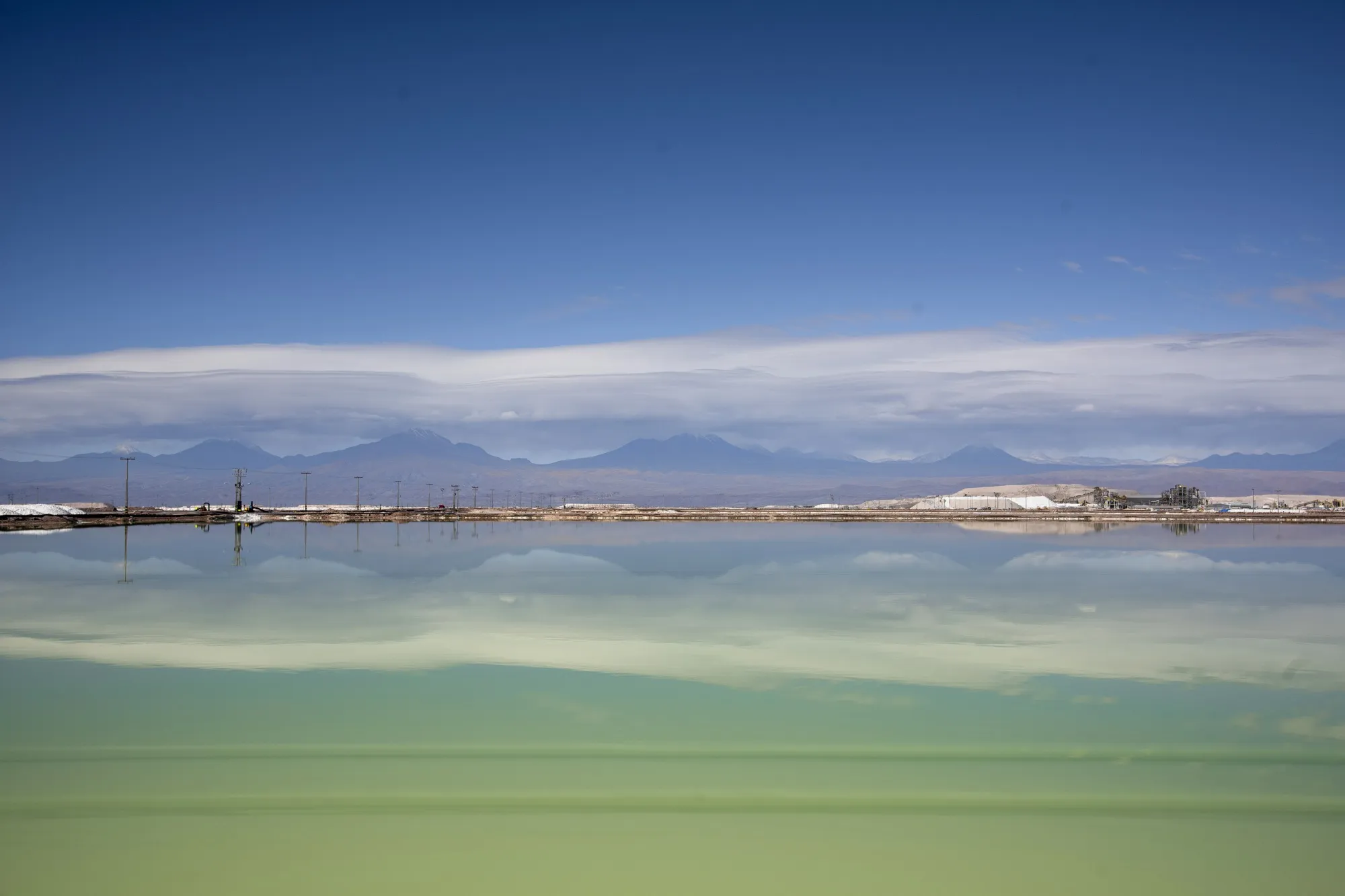 智利阿塔卡马沙漠SQM工厂的一个卤水湖。SQM是智利允许扩产的两家矿业公司之一,条件是他们将部分产量出售给将在国内开发该材料的公司。