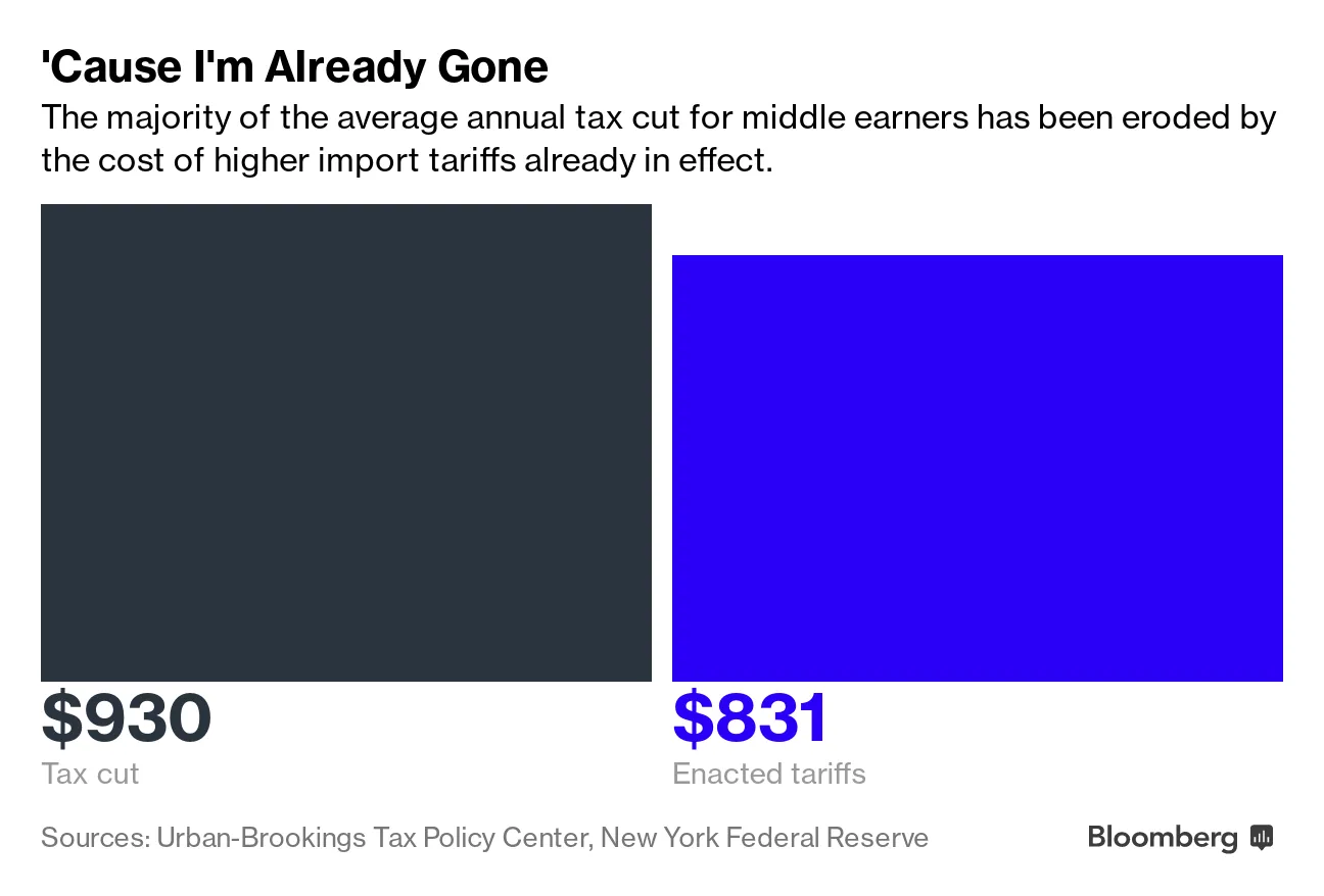 - 贸易战已经抹去了2017年减税带给普通美国家庭的所有收益,除了100美元。如果新关税被征收,他们还需承担额外3000美元的费用。