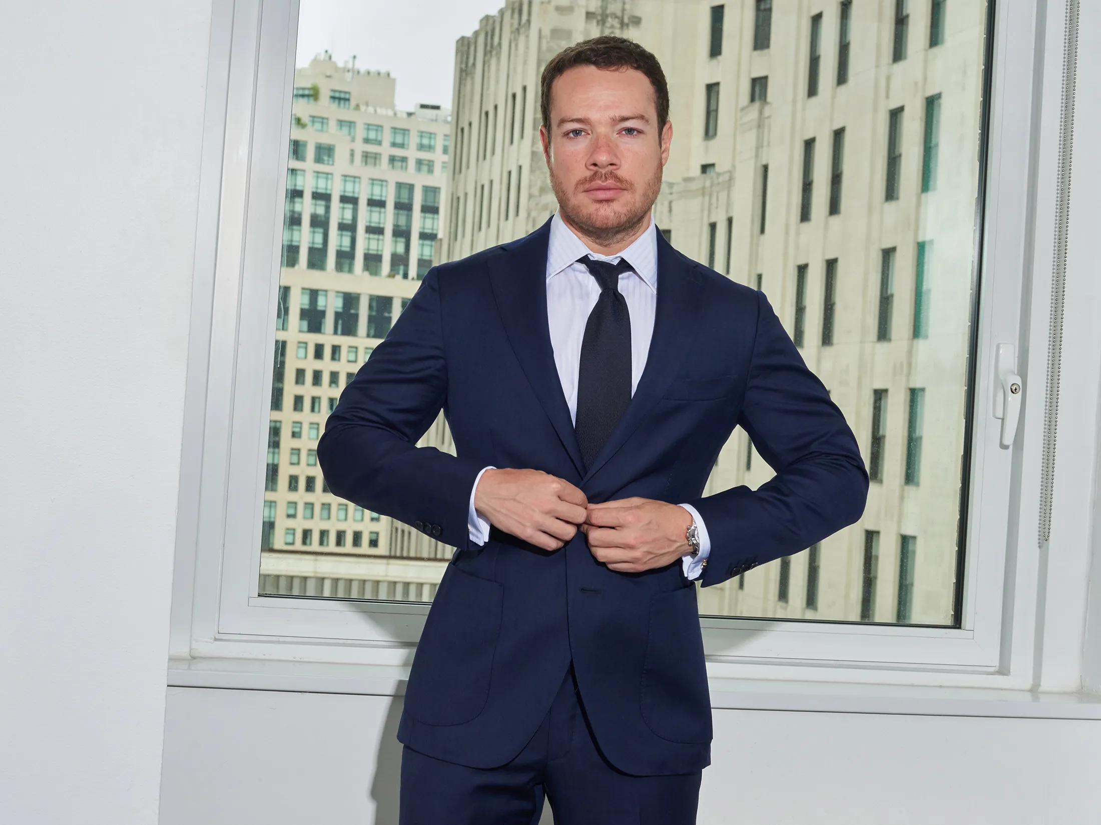 在最近的一个早晨,在Bustle位于曼哈顿的办公室,戈德堡穿着一件紧身短袖的Lacoste polo衫,展示了他的肱二头肌。(他定期去健身房以缓解压力,并在社交媒体上发布了自己举重的视频。)在他的办公室墙上,他挂着他所钦佩的女性的照片:麦当娜、玛格丽特·撒切尔、居里夫人和雪莉·奇肖姆。
