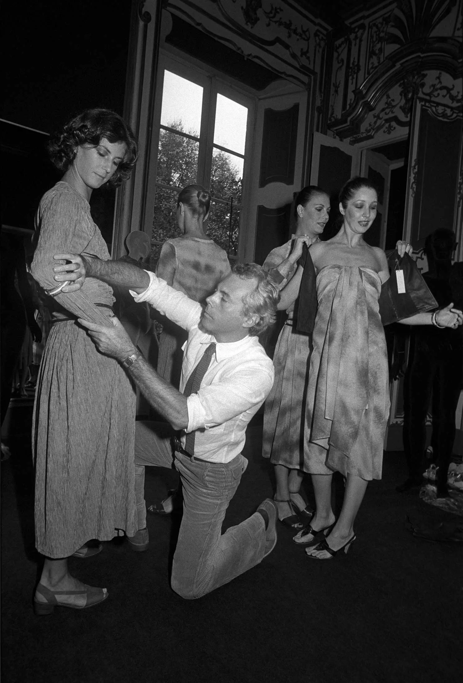 阿玛尼在1978年为模特试衣。摄影师:蒂姆·詹金斯/彭斯基媒体/快照阿玛尼在米兰标志性的Rinascente百货商店开始了他的窗饰生涯,成为尼诺·切鲁提的男装设计师,当时他是意大利时尚界最大的名字之一。他于1975年与合作伙伴塞尔吉奥·加莱奥蒂创立了自己的公司。重大突破发生在1980年代,当时阿玛尼将目光转向西方——追逐为美国明星在红毯上穿衣和在银幕上造型的机会,例如黑帮史诗 无敌者、热门电视剧 迈阿密风云,或年轻的理查德·基尔在 美国妓男 中。
