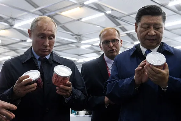 他们甚至一起去购物。摄影师:基里尔·库德里亚夫采夫/法新社/盖蒂图片社### 中俄,敌友关系