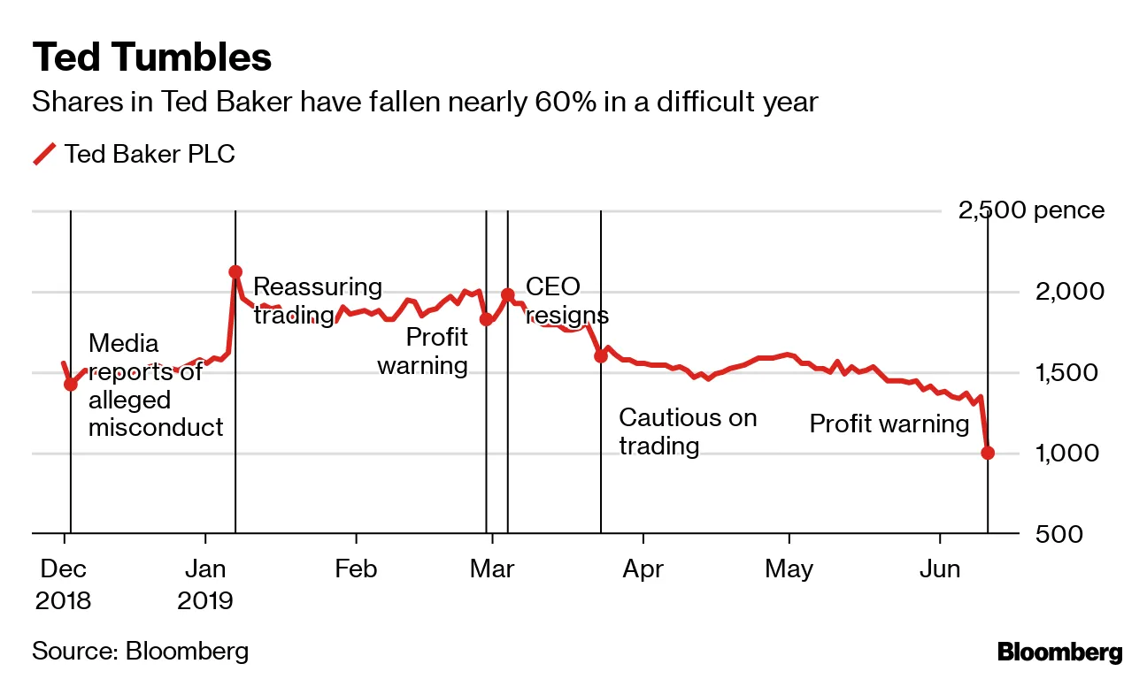 - 这家服装连锁店正在为前首席执行官 Ray Kelvin 的 #MeToo 时刻付出代价,彭博社观点专栏作家安德里亚·费尔斯特写道。Ted Baker 曾是英国更具韧性的零售商之一,直到 Kelvin 在被指控给员工不受欢迎的拥抱后辞职。艰难的零售环境也是一个因素。