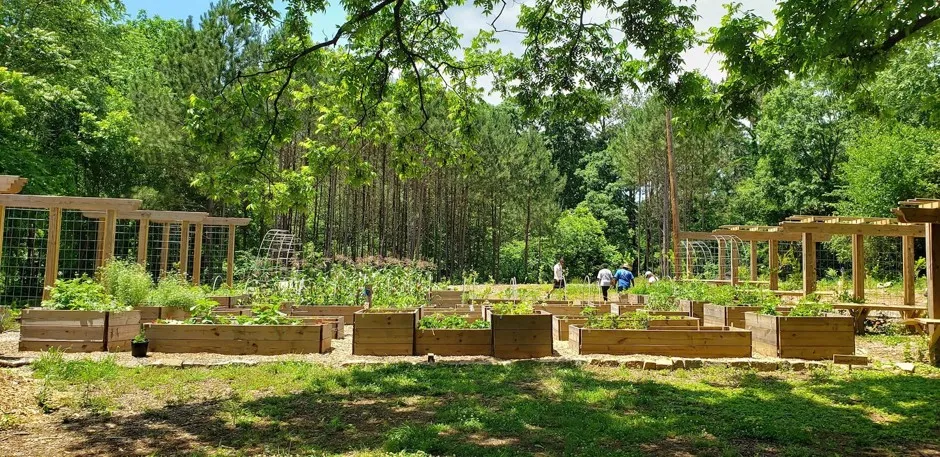 布朗斯米尔城市食品森林的社区花园区域。由Trees Atlanta提供环绕森林的湖伍德-布朗斯米尔社区被认为是一个城市食品沙漠。市长基莎·兰斯·博顿的一亚特兰大办公室旨在通过增加新鲜食品的获取和发展更具韧性的食品系统来消除城市的食品不安全问题。这个森林可能帮助城市实现到2021年让85%的居民在半英里内获得新鲜食品的目标。