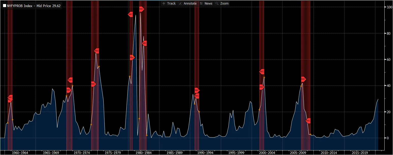 尽管对贸易紧张局势和美联储今年不降息的风险感到偏执,但现在有相当多积极的事情正在发生。美国的金融状况处于五年的正常水平——这表明市场波动并没有真正拖累增长。中央银行家们不断暗示,他们将限制实际利率,以保持债务驱动的超级周期。尽管谈论货币战争,但相对平稳的股价波动和同步的鸽派货币政策正在抑制外汇波动。正如Jefferies所指出的,降息正在全球范围内发生,从新西兰到菲律宾,中央银行家们无需担心较弱的货币会推高进口通胀。与此同时,国债收益率的下降正在重新点燃全球的套利交易。在这种促进增长的风险偏好背景下,下半年的前景感觉比以往更为二元。根据纽约联邦储备银行的隐含衰退概率模型,债券似乎在闪烁衰退信号。目前为29%,是自2008年以来的最高水平。然而,来自经济合作与发展组织的其他领先指标可能暗示未来几个月会有温和的回升。