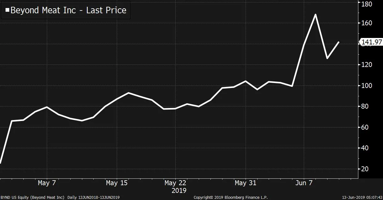 Beyond Meat是2019年最有趣的公司和股票故事之一。自首次亮相以来,股票上涨超过400%,自上周报告首个季度收益以来增加了约40%。前几天我想到,首次公开募股让我想起2000年Krispy Kreme的首次公开募股。那家甜甜圈连锁店在那年的4月上市,并在7月初几乎翻了四倍。Krispy Kreme首次公开募股的显著之处在于,它正好发生在互联网泡沫的顶峰之后,并且它代表了一种非常真实和具体的东西(卖甜甜圈),而在那段时间,所有的兴奋都是针对那些完全不真实和具体的企业(所有的互联网公司)。今天我们再次看到了这一点。虽然肉可能是假的,但销售素饼的商业模式非常真实且易于理解:理想情况下,你以高于生产成本的价格出售饼,销售越多越好。将Beyond Meat的商业模式与Uber进行比较,后者的产品真实成本和价格难以理解和预测,盈利路径模糊。我并不是预测历史会重演或甚至押韵,只是指出在某些时候,当人们被复杂的故事淹没时,有时他们会倾向于简单的故事。