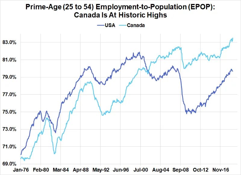 本周的主要事件可能是本周三的美联储决策。考虑到最近的市场波动、贸易紧张、疲软的劳动数据、温和的通胀和下降的通胀预期,降息的讨论成为了焦点。但共识是,尚不会有降息。俄勒冈大学教授和彭博社观点撰稿人蒂姆·杜伊预计,“美联储将通过将‘委员会将保持耐心’替换为‘委员会将采取适当行动’来发出更加温和的信号,以维持经济扩张。”在相关的注意事项中,你应该阅读Skanda Amarnath在新智库Employ America发布的最新文章,关于货币政策制定者可以从加拿大学到的关于就业与通胀之间联系的教训。基本的要点是,几乎不可能找到任何证据表明,一旦就业达到某个水平,通胀就会开始加速。在加拿大,适龄就业人口比率达到了历史新高,超过了危机前的峰值——然而通胀仍然没有任何动静。如果即使是劳动力利用率的最佳指标也能在没有价格增长上升的情况下达到峰值紧张,或许这种联系是微弱的。他进一步提出,也许就业增长的速度,而不是就业的总水平,可能具有更大的解释力。整个内容绝对值得一读。