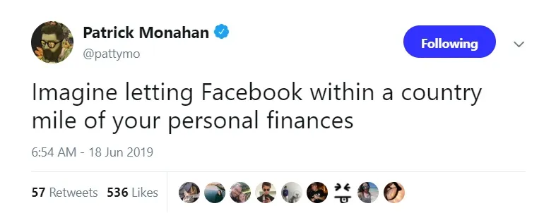 正如我们昨天提到的,脸书公司正在推出自己的货币“Libra”,希望有一天能成为最受欢迎的互联网融资选项。到目前为止,反响大致是: