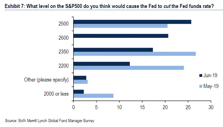 问题在于,随着标准普尔500指数重新回到2900点以上,目前没有必要在现任美联储主席杰罗姆·鲍威尔的领导下触发这样的“保护性期权”。这是美银调查的基金经理们预计美联储将行使保护性期权的标准普尔500指数水平: