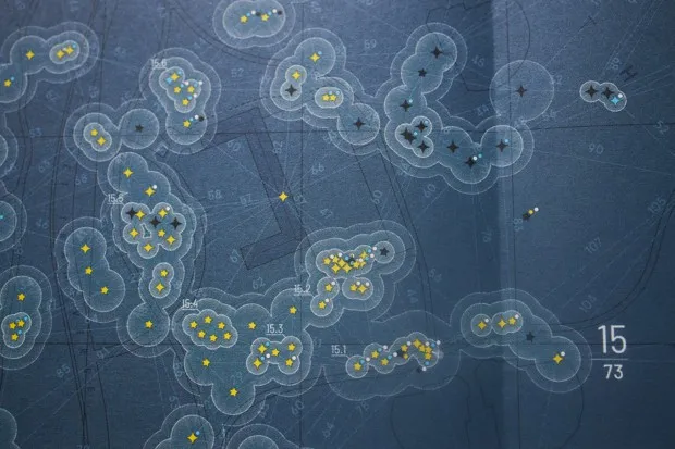 松鼠的目击情况在这个“天体”地图中以星星和星座的形式表示。斯科特·洛登/松鼠普查团队在将他们的数据输入到一个在1950年代和60年代由著名松鼠生物学家瓦根·弗莱格尔推广的公式后,找到了估计的“丰度数字”,该公式考虑了统计松鼠的不确定性。