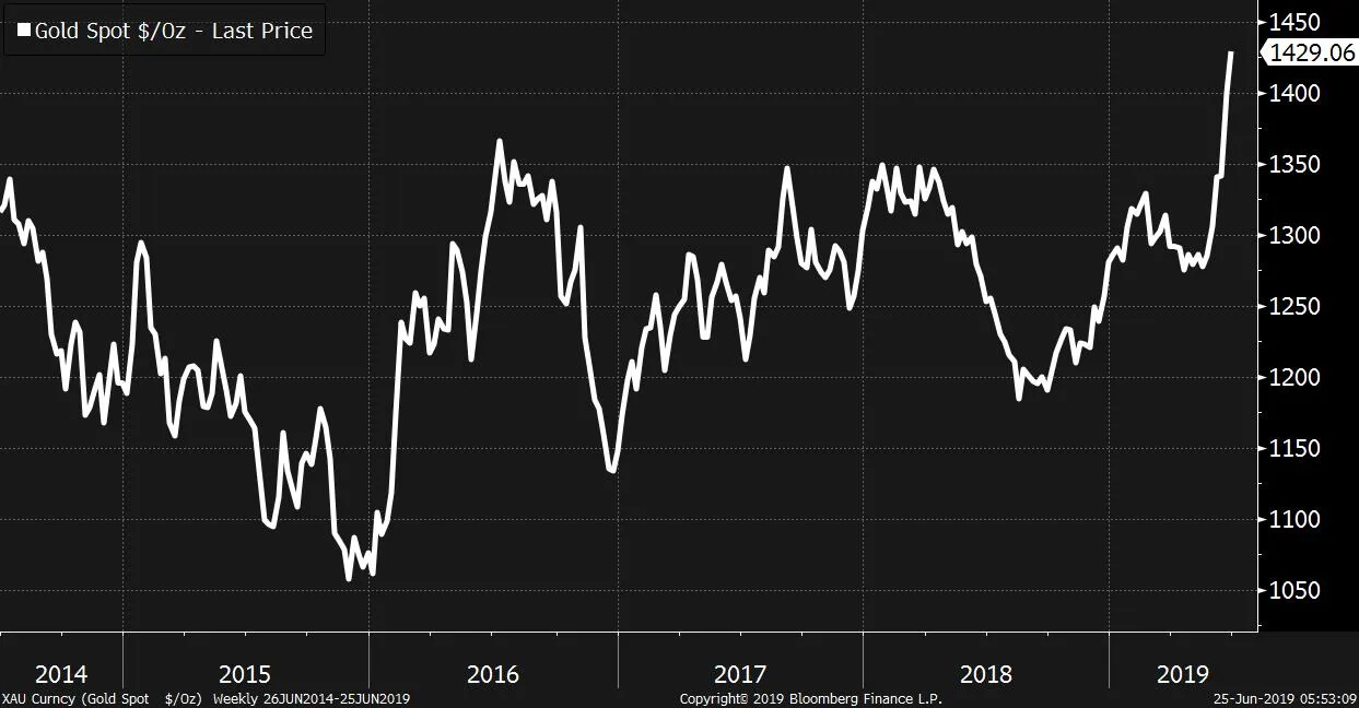 黄金在四月中旬以来上涨超过12%后,突破了六年来的高点。显然,长期看涨者感到兴奋,尽管他们在任何环境下对黄金的看法从未改变,因此他们的观点并不特别有趣。当人们改变看法时,更值得注意。这样的一个人是Bannockburn Global Forex的Marc Chandler,他最近写道 他对这种金属持积极态度,这是他职业生涯中的一个罕见时刻。在他看来,美联储转向宽松政策加上海湾地区紧张局势,为黄金提供了完美的组合。他在他的博客上写道 黄金的技术形态 现在“指向1700美元。”今天下午我们将在《你错过了什么》中邀请Marc来谈谈黄金、美元(在最新的地缘政治压力下并未上涨)以及这一时刻是否真的标志着一些关键金融变量的转折点。
