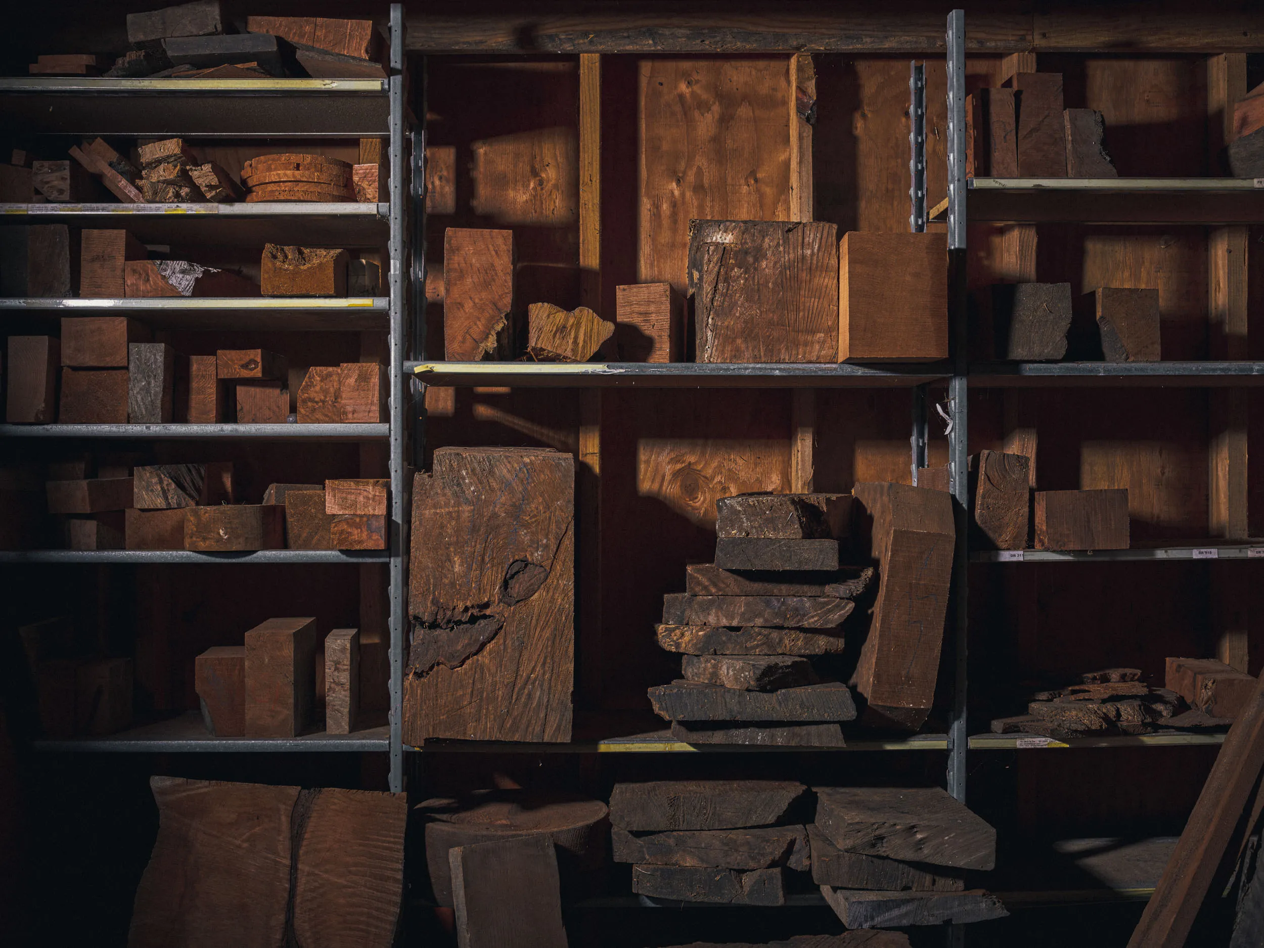 存放在轮子仓库中的树瘤。摄影师:巴拉兹·加尔迪,彭博商业周刊“事情永远不会回到从前,”他说,站在被破坏的树桩前,树桩的空腔在他上方和周围延伸。