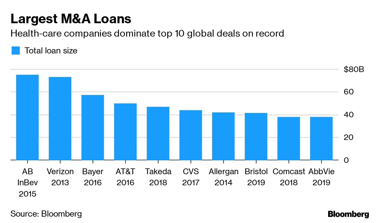 - 艾伯维有380亿美元的承诺融资,这是有史以来第十大的并购贷款,数据显示。