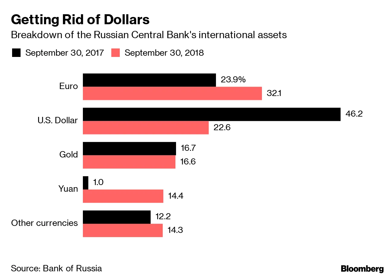 俄罗斯对黄金的偏好似乎正在获得回报,Leonid Bershidsky为彭博社观点撰写。该金属目前处于2013年以来的最高水平,证明了俄罗斯在价格低迷时仍然积累储备的政策是合理的。如果我们再经历几年低利率和地缘政治不稳定,更多国家的国际储备可能会像俄罗斯那样结构化。