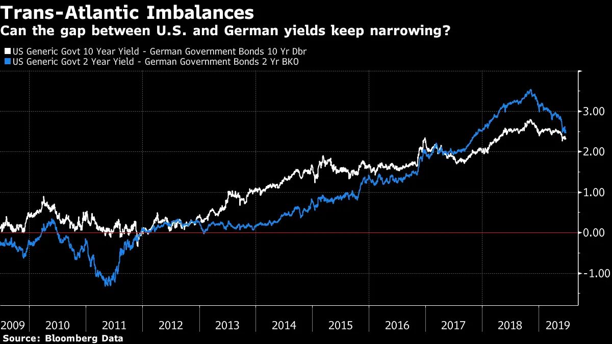 美国国债收益率的持续下降减轻了对美元的上行压力,因为国债相对于欧洲债券的利差或额外收益已从看似极端的水平回落。但利差仍然很大: