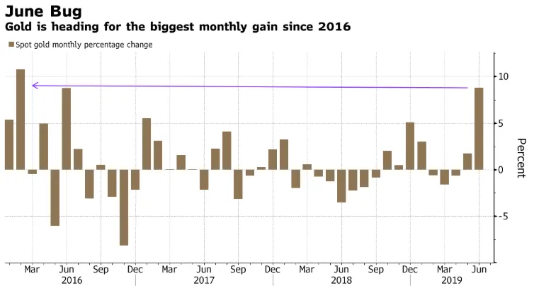 - 全球股票在6月份几乎上涨了6%,债券则有望迎来2019年最佳月份,因为市场预期中央银行将放松政策以应对经济放缓。