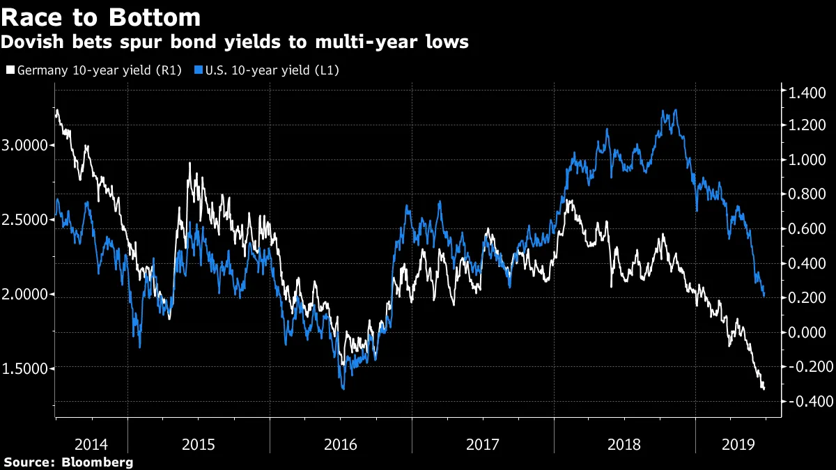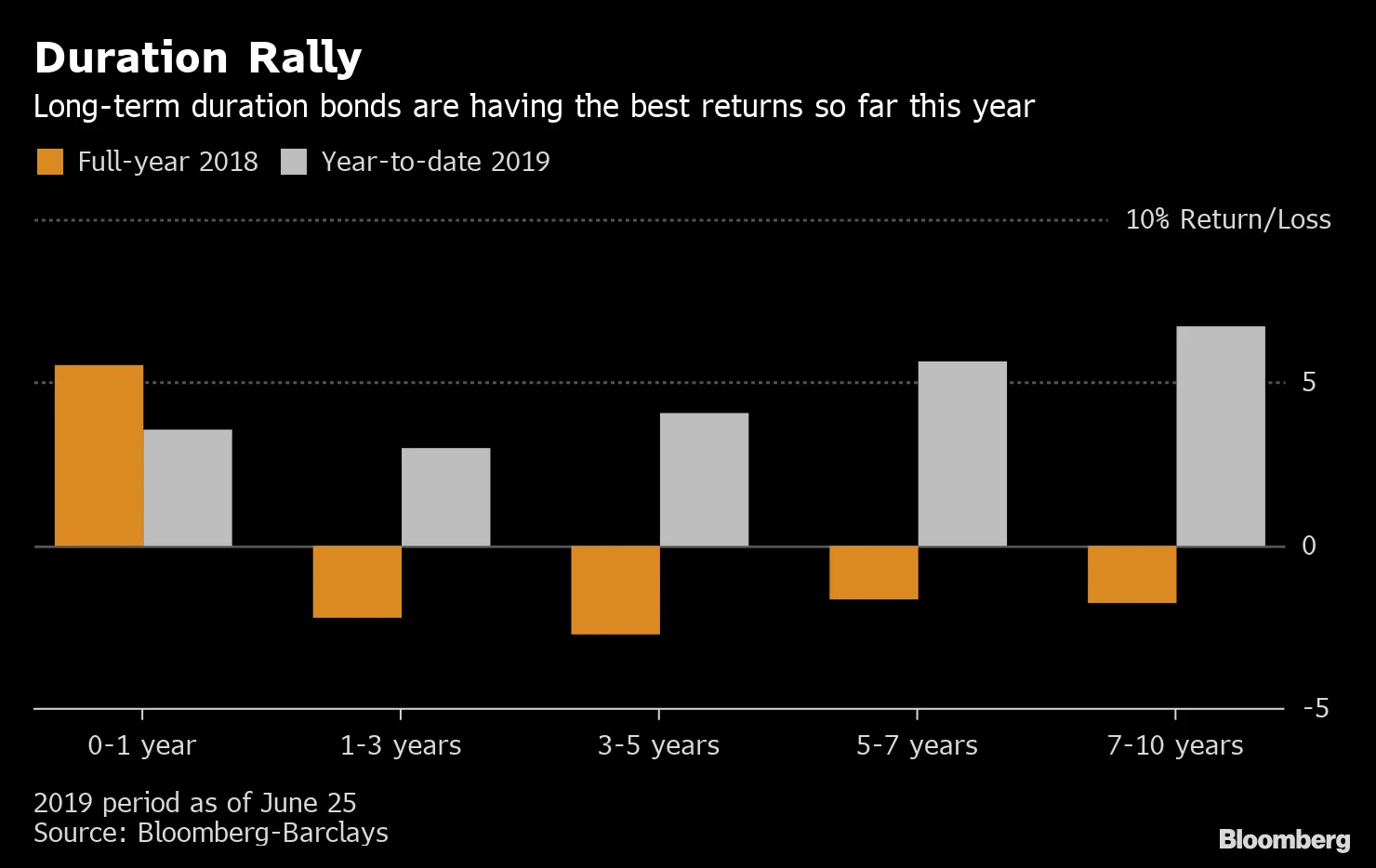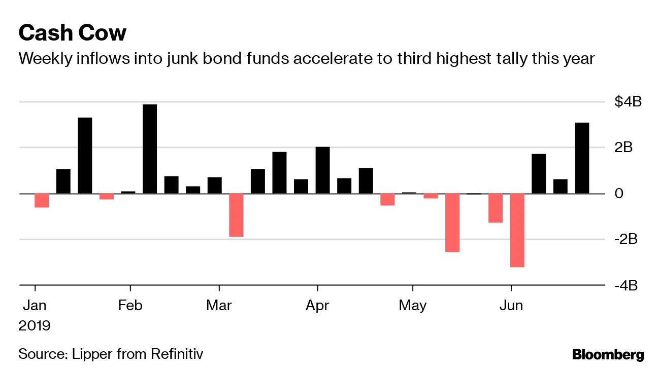 即使资金流动不在,持续的债券反弹也不难理解:全球经济活动乏力(包括一些美国疲软的迹象),贸易带来的下行风险依然很大,通货膨胀处于低迷状态,全球中央银行 正在放松政策,美联储主席杰罗姆·鲍威尔本周重申 对利率的长期低预期。