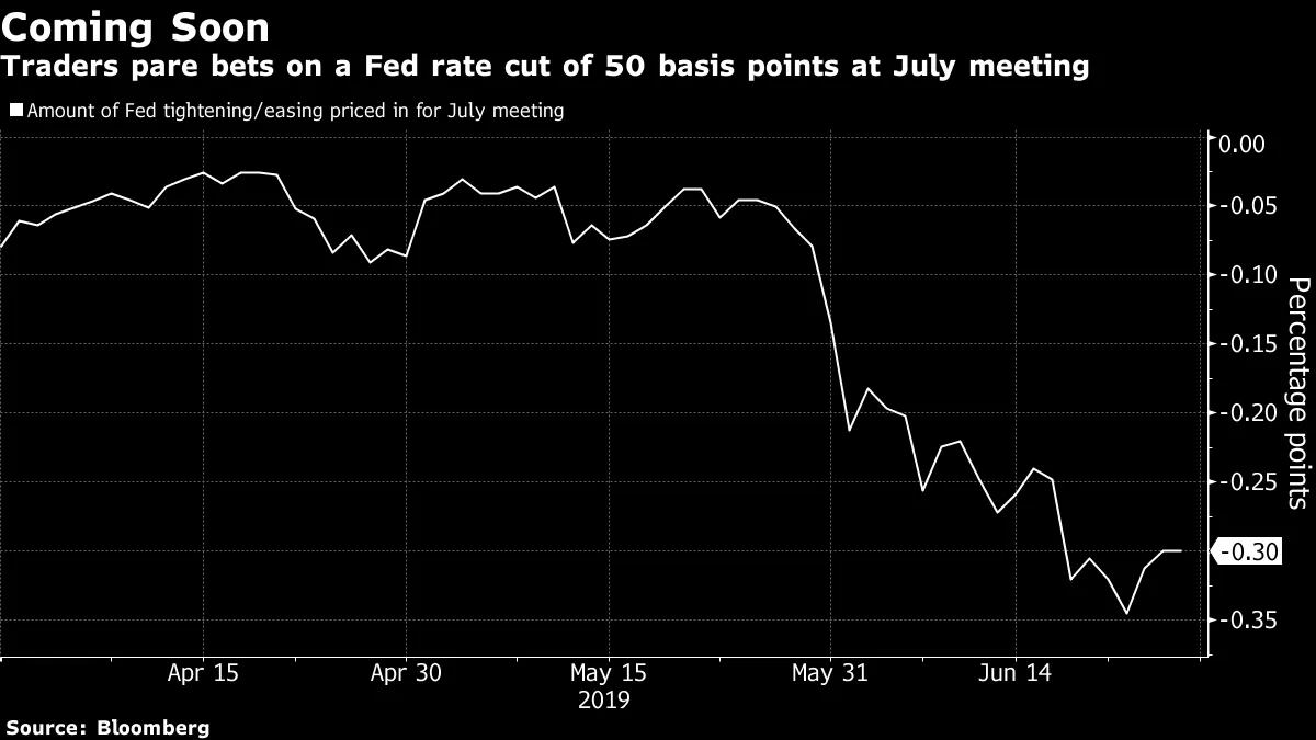 在这些言论之后的几分钟,鲍威尔重申了他的观点,即FOMC正在考虑与贸易和全球增长相关的不确定性是否足以值得立即降息。因此,交易员们认为七月唯一的问题是降息25个还是50个基点,突然意识到美联储并没有预先判断结果。这样的信息后来得到了里士满的汤姆·巴金和旧金山的玛丽·达利的呼应。